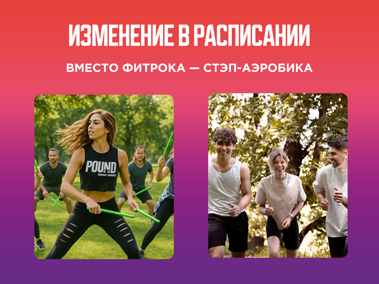 Если вы были записаны на фитрок и не против попробовать новый формат — приходите! Будет весело, активно и под музыку.